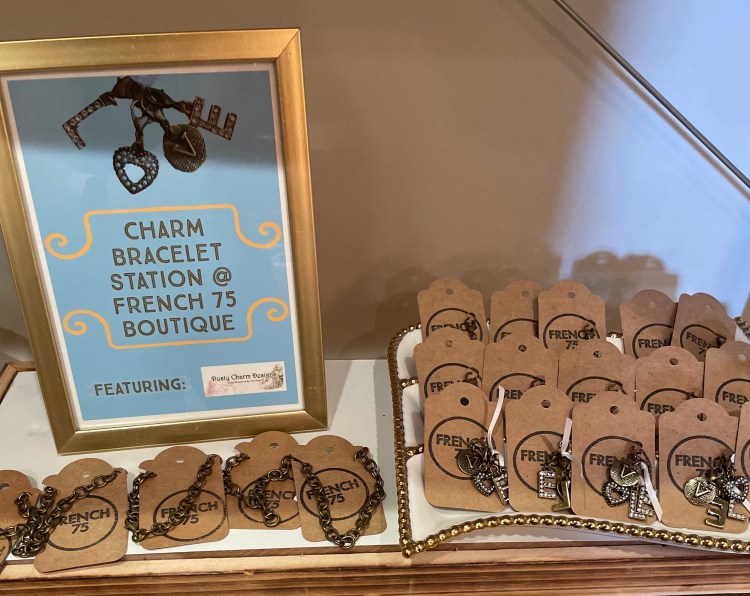 As Loretta and I discuss product best suited for her boutique, I’ve decided to create jewelry that can be found exclusively at French 75. Of course, my little etsy shop Dusty Charm Designs is continually renewed with fanciful designs, as well. Each shop has its own unique ambiance. With its name based on a cocktail (see recipe below), French 75 is a fresh boutique with selections provided by designers that by no means mass produce in Amazon fashion. If your fortunate enough to visit her shop, you surely won’t find her offerings elsewhere in neighboring shops. She offers bar ware, textiles, home decor, and much more. On the other hand, My Dusty Charm Designs touts itself with unique selections that are full whimsy, nature, and magic. The following DCD items can be found at French 75 Boutique!